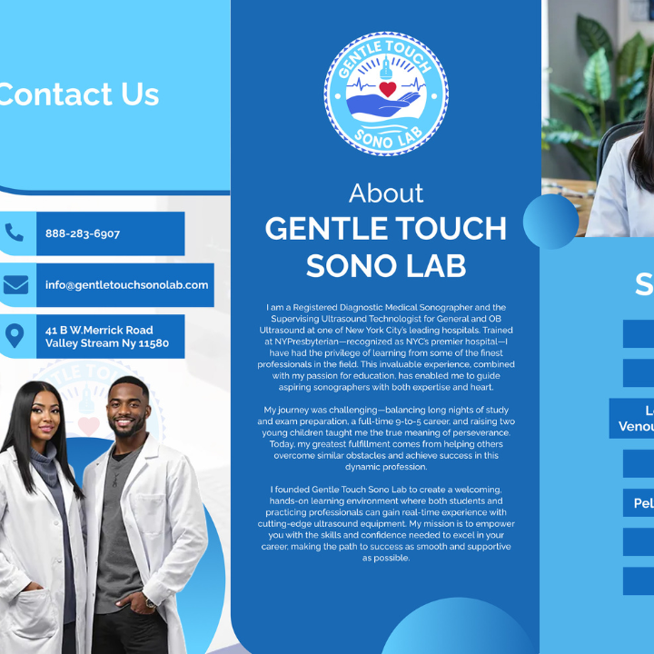 Gentle Touch Sono Lab provides an invaluable service for aspiring Sonographers who have completed their academic and internship requirements but have yet to obtain their state license. We understand the significant challenge many face, the crucial period between graduation and licensure often leads to decline in practical skill due to lack of hands on experience. Our Lab will be bridging that gap.